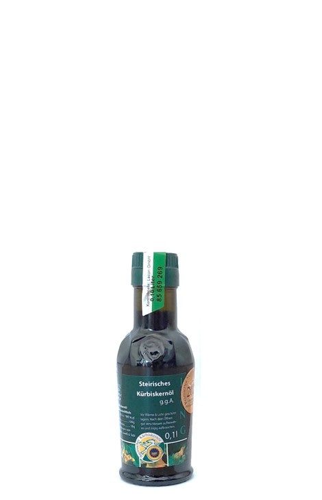 0,1 Liter Steirisches Kürbiskernöl g.g.A. Unsere "Kostprobe": Die 0,1-Liter-Flasche mit dem steirischen Panther - prämiert mit der Goldplakette 2026! Unser... Lesen Sie mehr