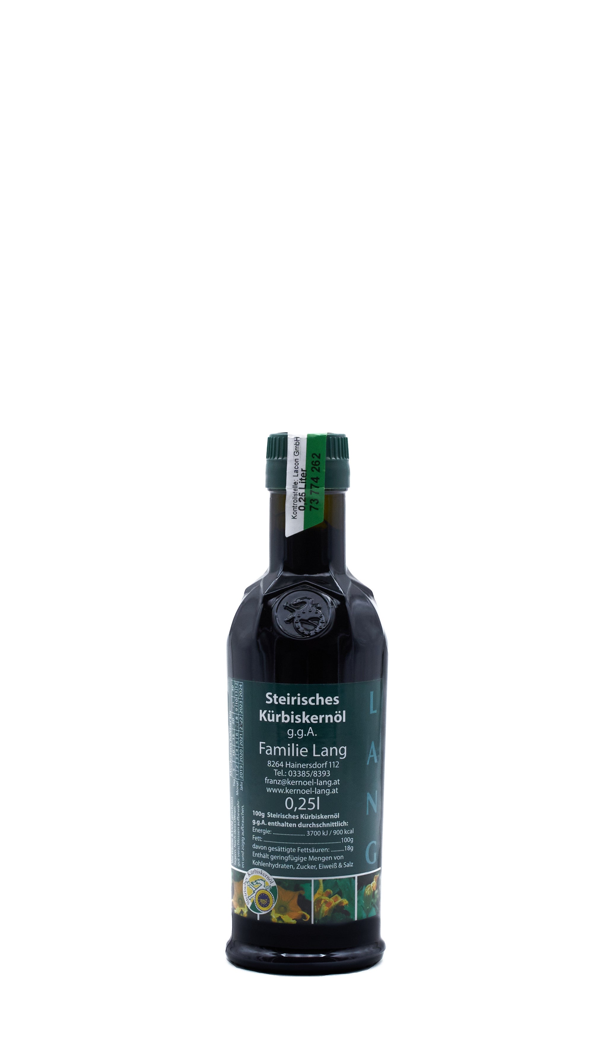 Jede Flasche Steirisches Kürbiskernöl g.g.A. ist durch die fortlaufende Banderolennummer vollständig rückverfolgbar – vom Feld bis zur abgefüllten Flasche.